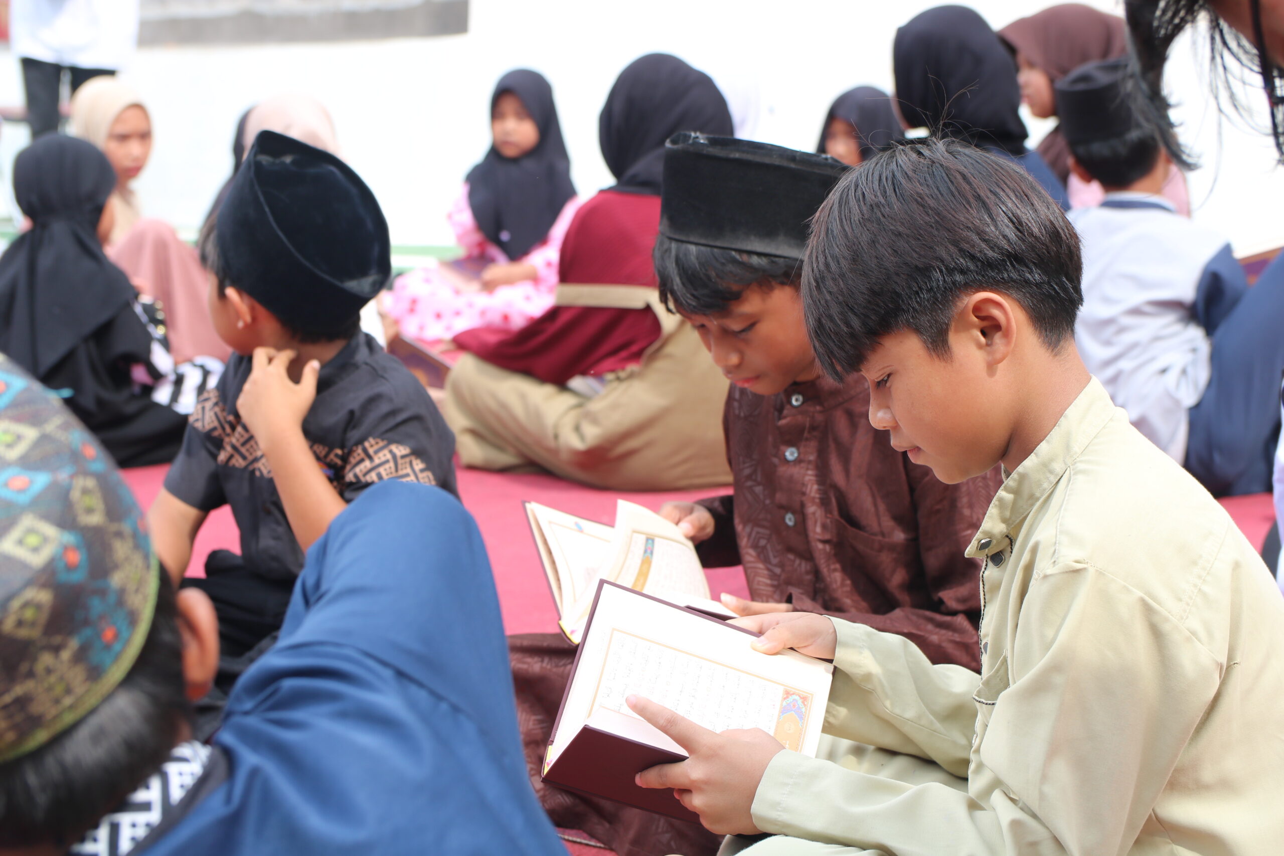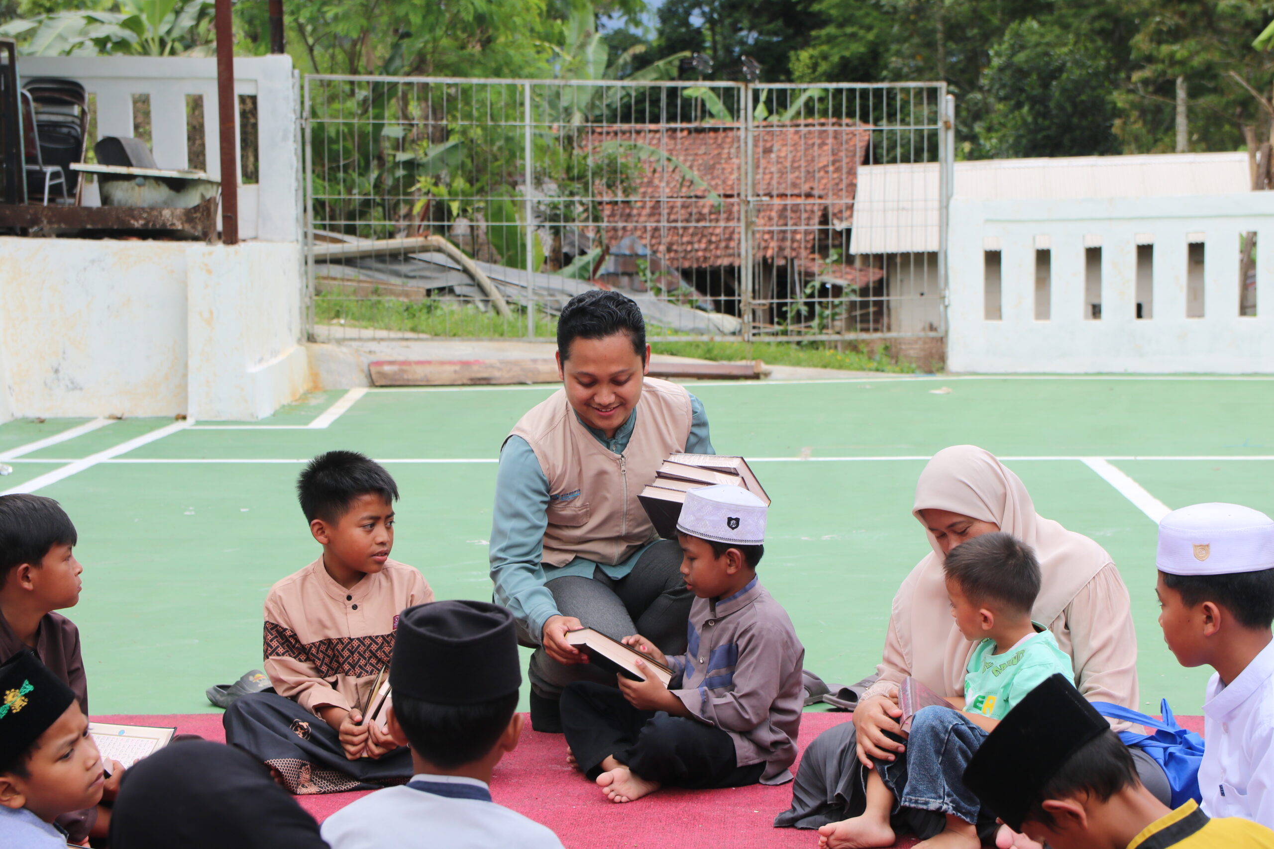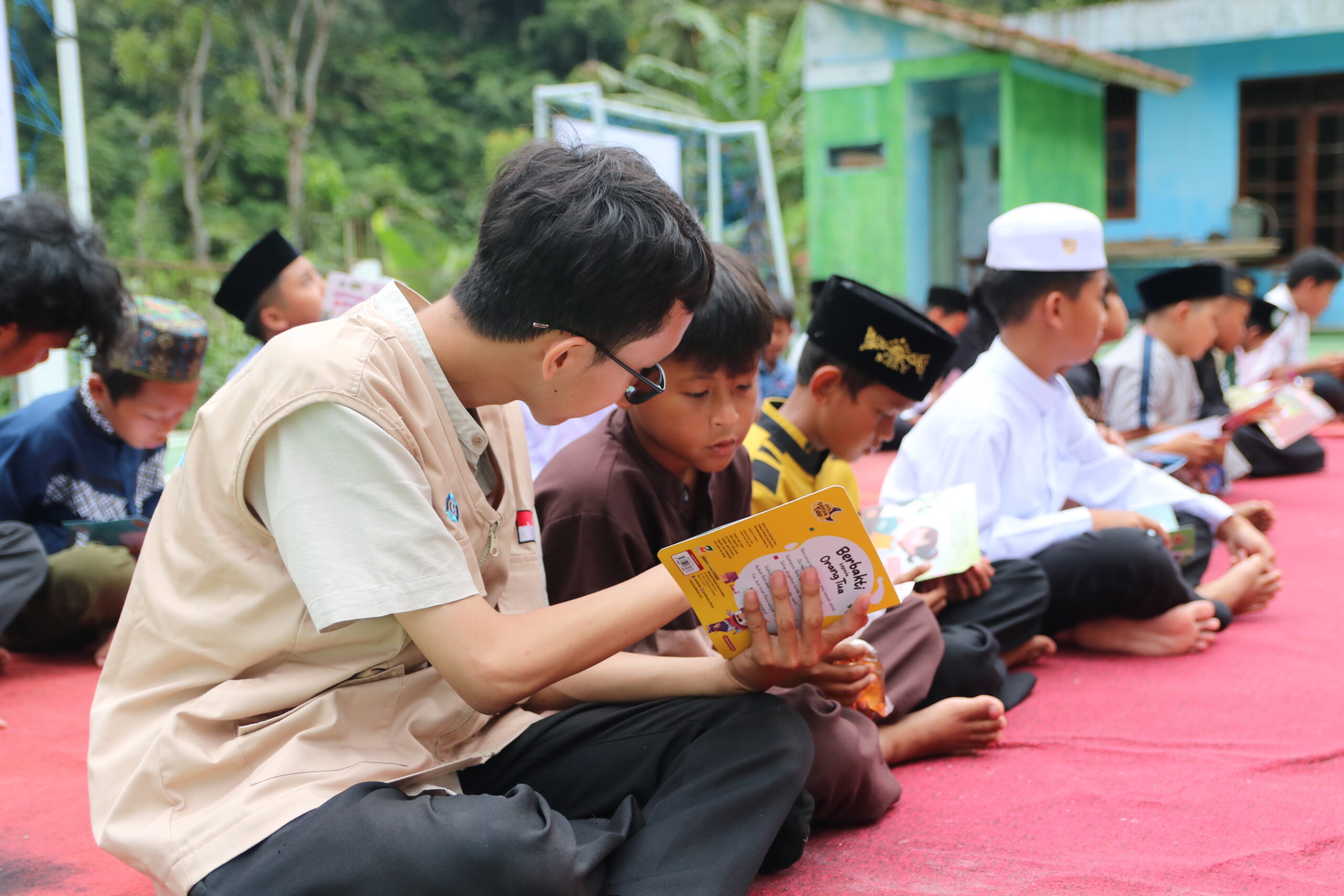Kegiatan diawali dengan membaca buku cerita bersama, dilanjutkan dengan membaca Al-Qur’an. Suasana penuh kehangatan dan kebersamaan terasa di tengah kampung, menghadirkan momen yang tak hanya berbagi Bingkisan, tetapi juga menumbuhkan semangat belajar dan nilai-nilai kebaikan.